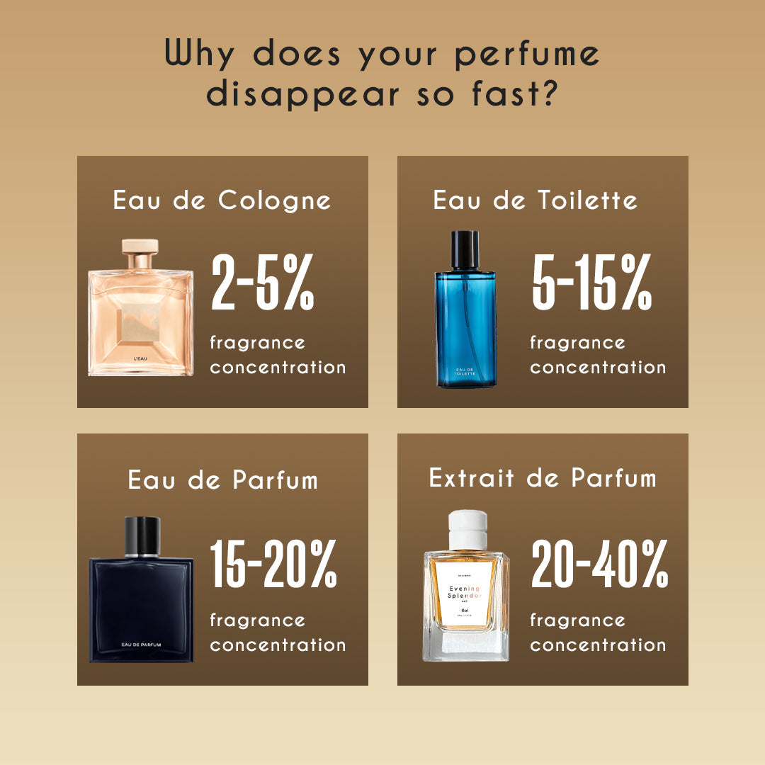 Higher concentrations mean longer-lasting scents. Stop overpaying for fleeting fragrances, understand what you're really buying. Many designer brands use lower percentages to cut costs, leaving you with scents that fade quickly.